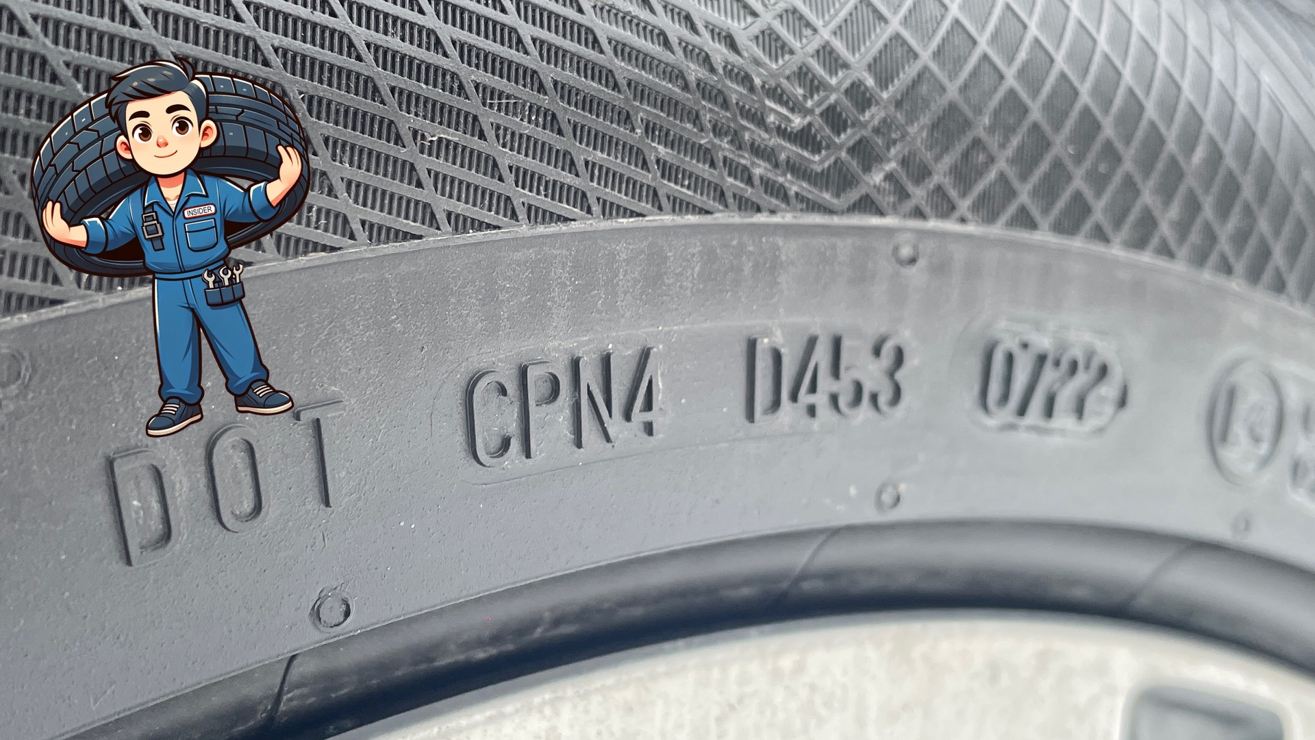 Das Alter eines Reifens lässt sich anhand der letzten vier Ziffern der DOT-Nummer bestimmen. Die ersten beiden dieser vier Ziffern geben die Produktionswoche an, die letzten beiden das Produktionsjahr. Zum Beispiel bedeutet eine DOT-Nummer mit den letzten Ziffern „2023“, dass der Reifen in der 20. Kalenderwoche des Jahres 2023 hergestellt wurde. Die Winterreifen aus dem nachfolgenden Beispiel sind aus der 7. Kalenderwoche 2022, die vorherigen Buchstaben und Ziffern sind interne Codes aus der Reifenproduktion.